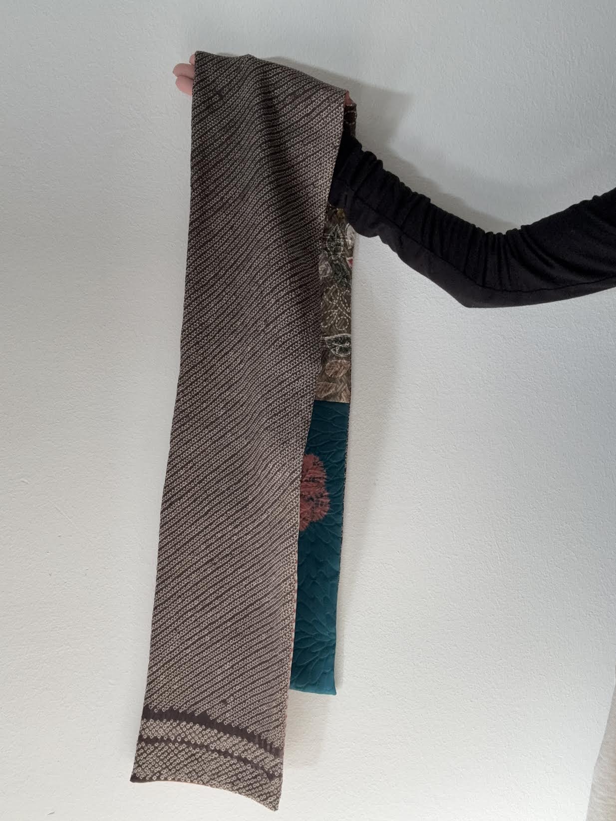 Combination with several pieces of kimono fabric.
