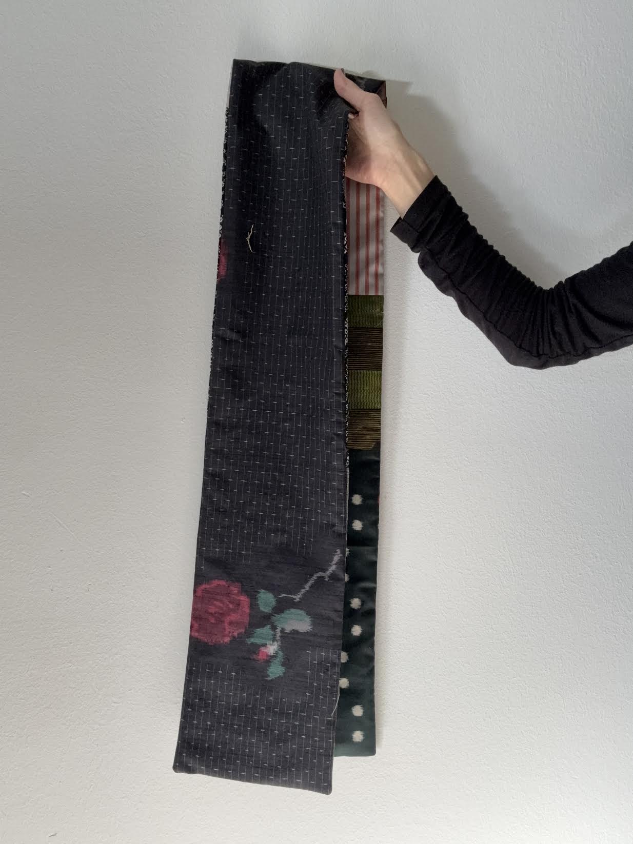 Combination with several pieces of kimono fabric.